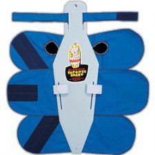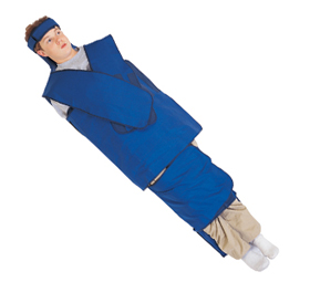Three sets of opposing canvas flaps with Velcro® fasteners fold over the patient's body